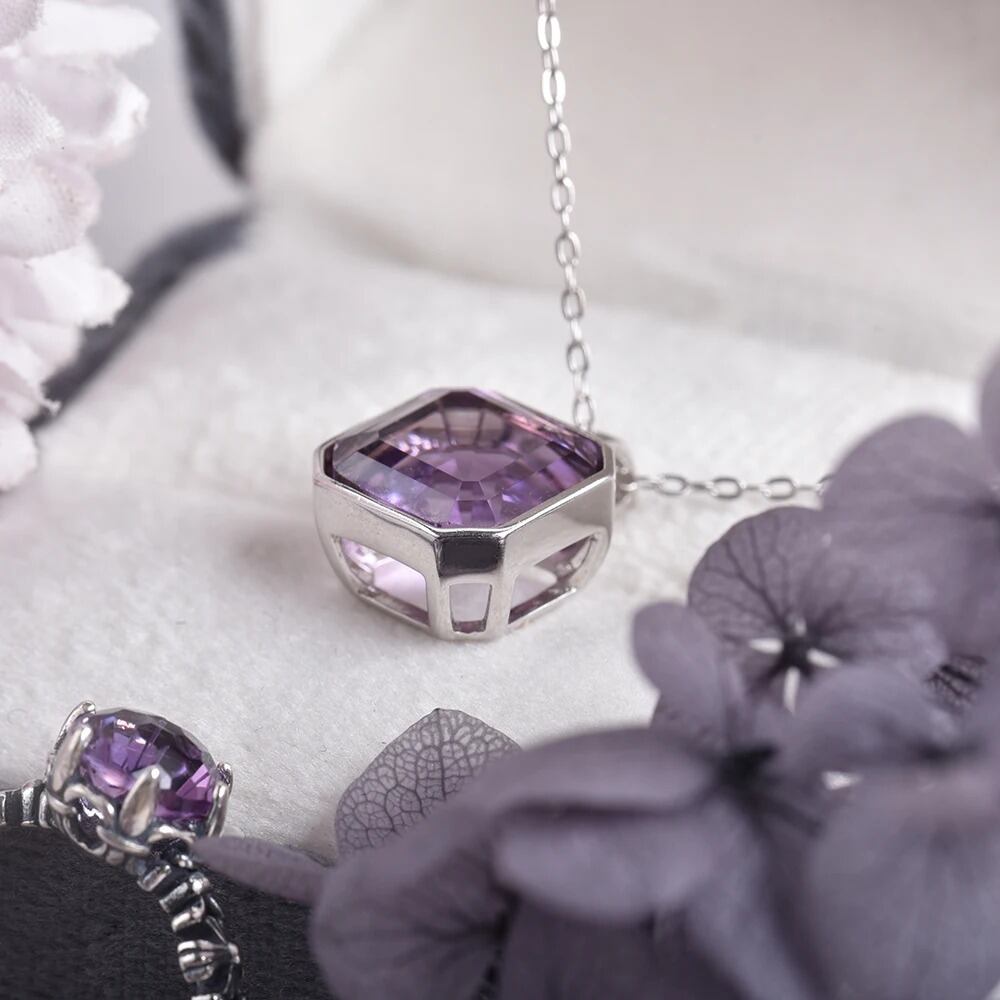 天然のアメジストには、一つひとつ異なる色合いや透明度があります。