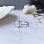その光を閉じ込めたように、ムーンストーンが静かに揺らめくリングです。