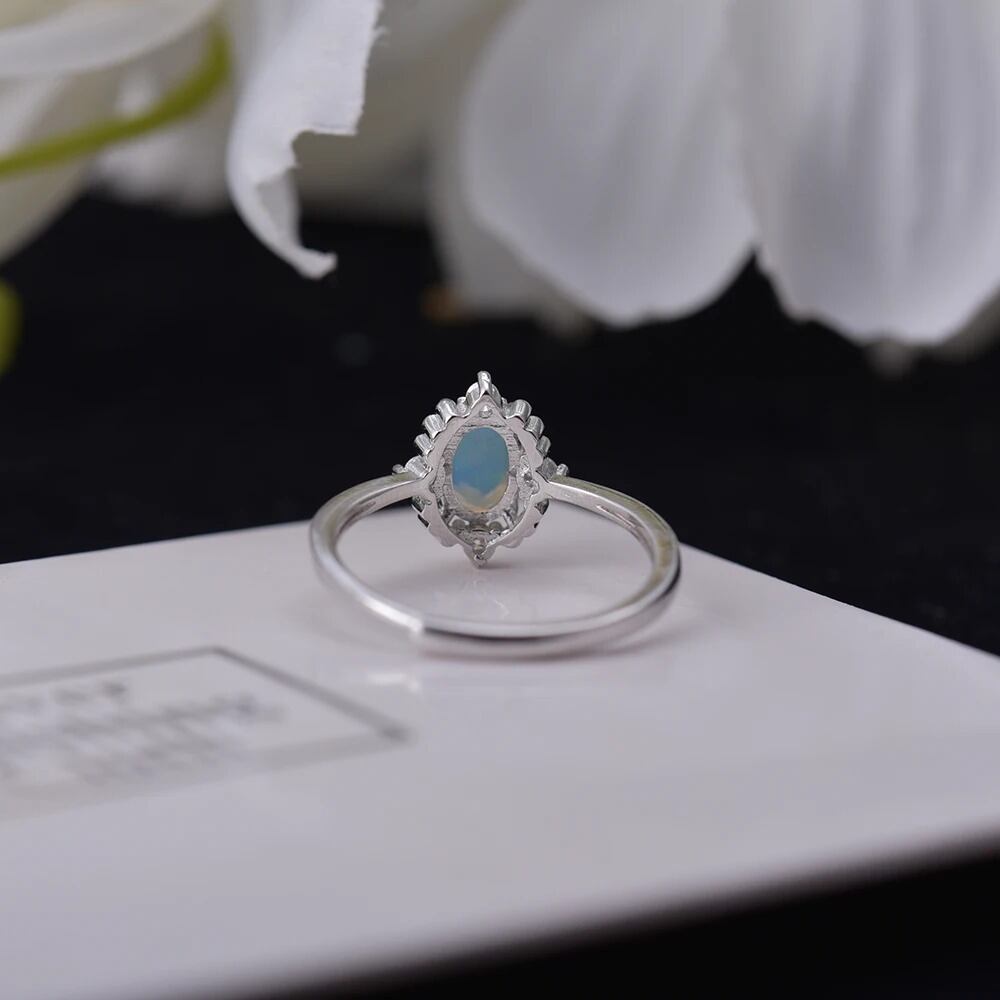 オパールの揺らめく光を引き立てながら、