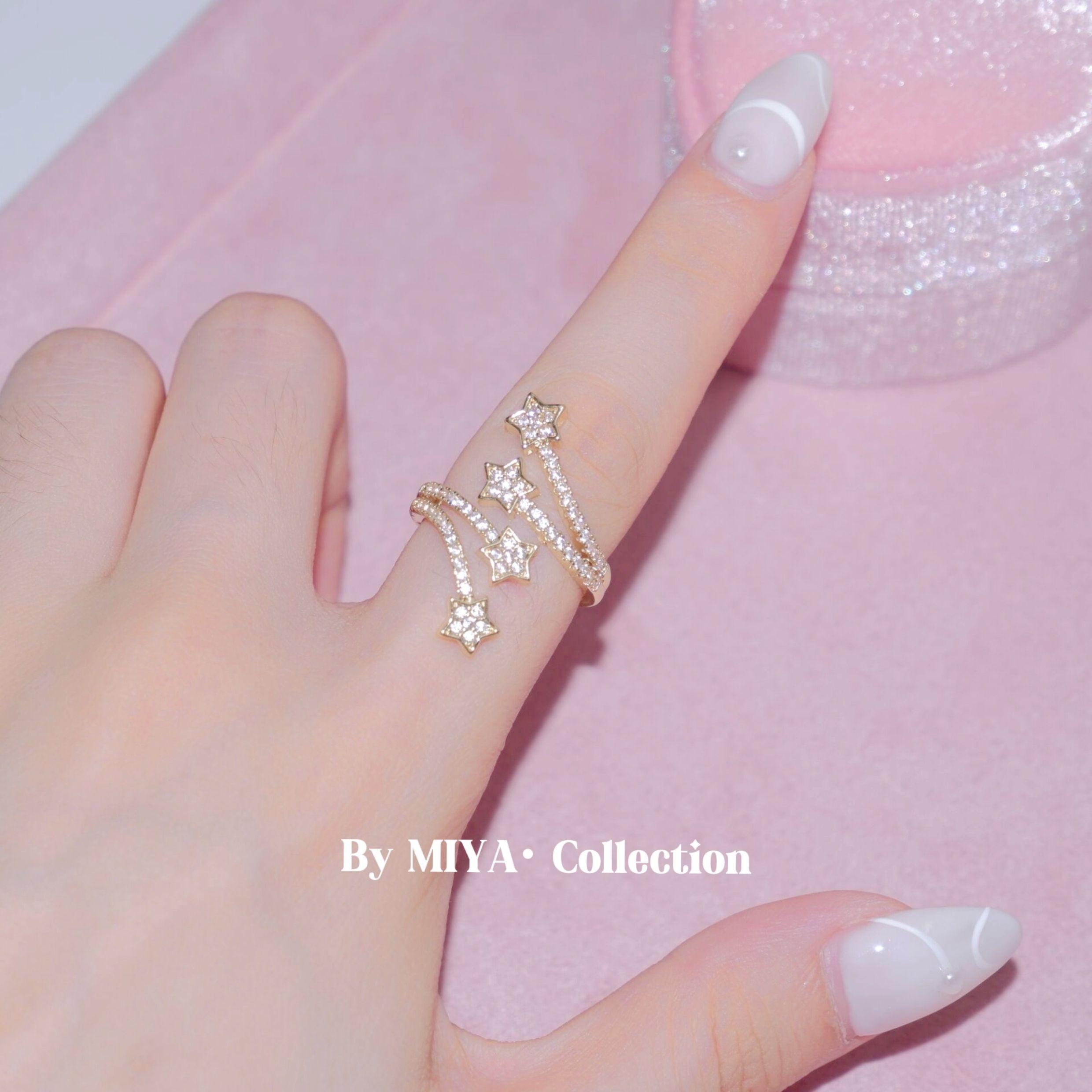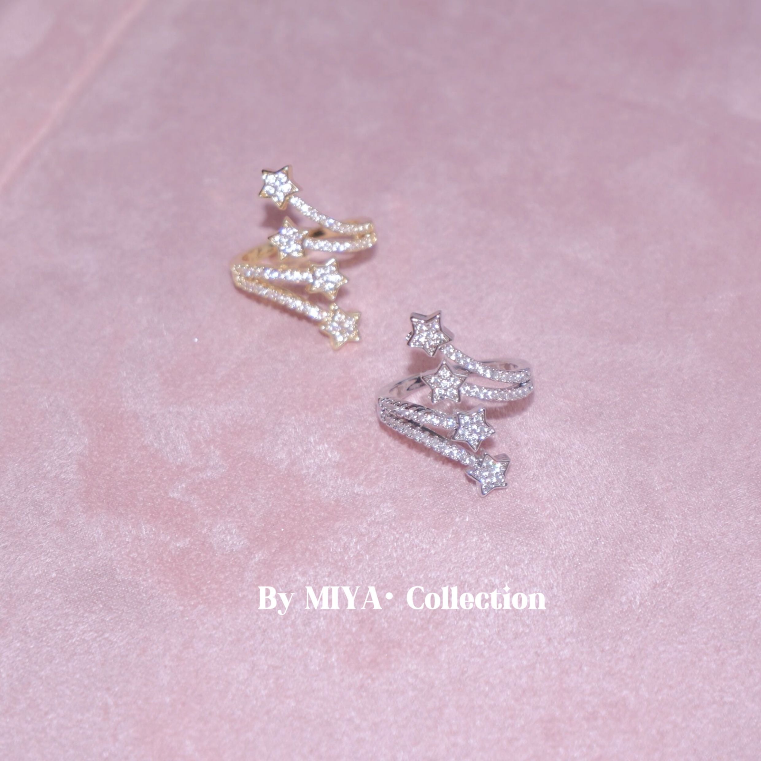 夜空を駆け抜ける流星を、そのまま指先に閉じ込めたようなダブルスターリング。