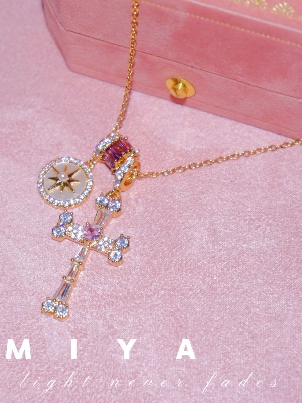 月祈りの十字架 ― ローズヴェールの守護ペンダント♥B402