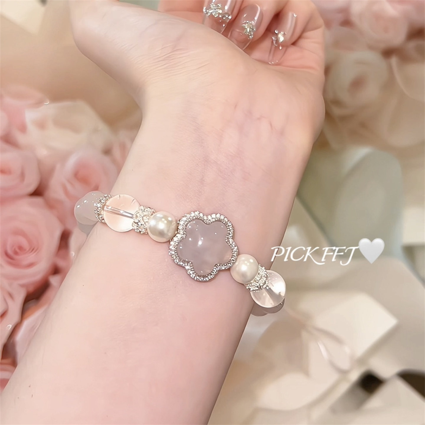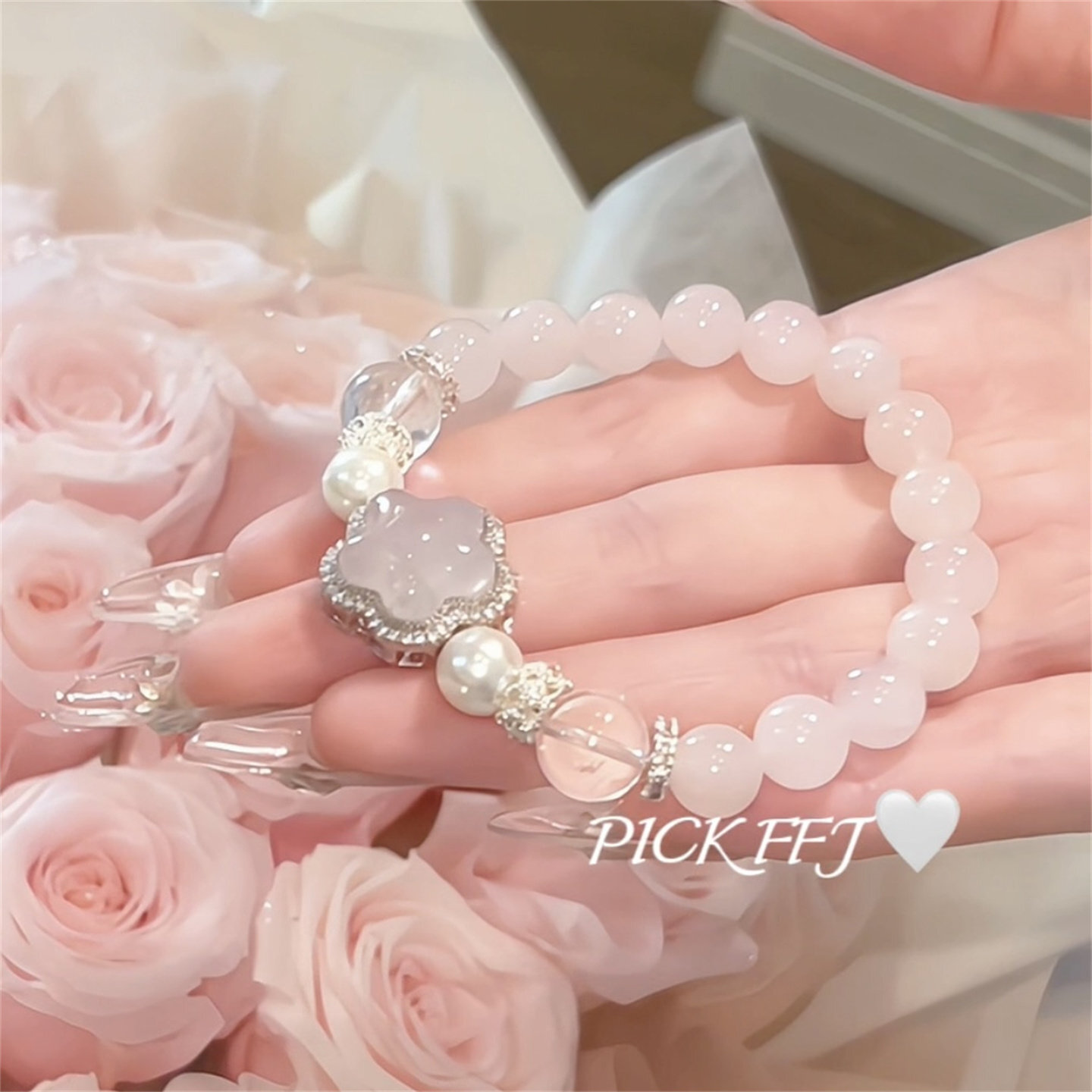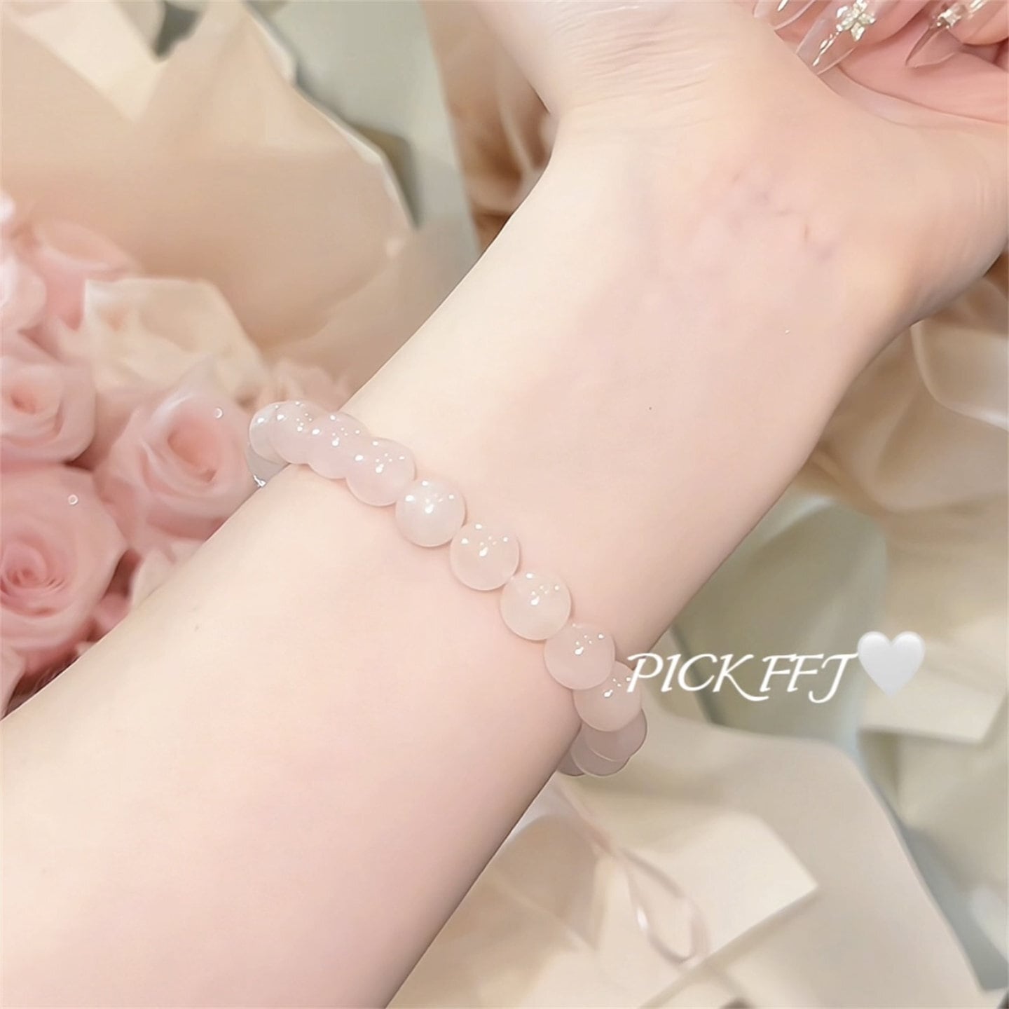 月にほどく恋 - ローズクォーツの星守りブレス❤︎B406