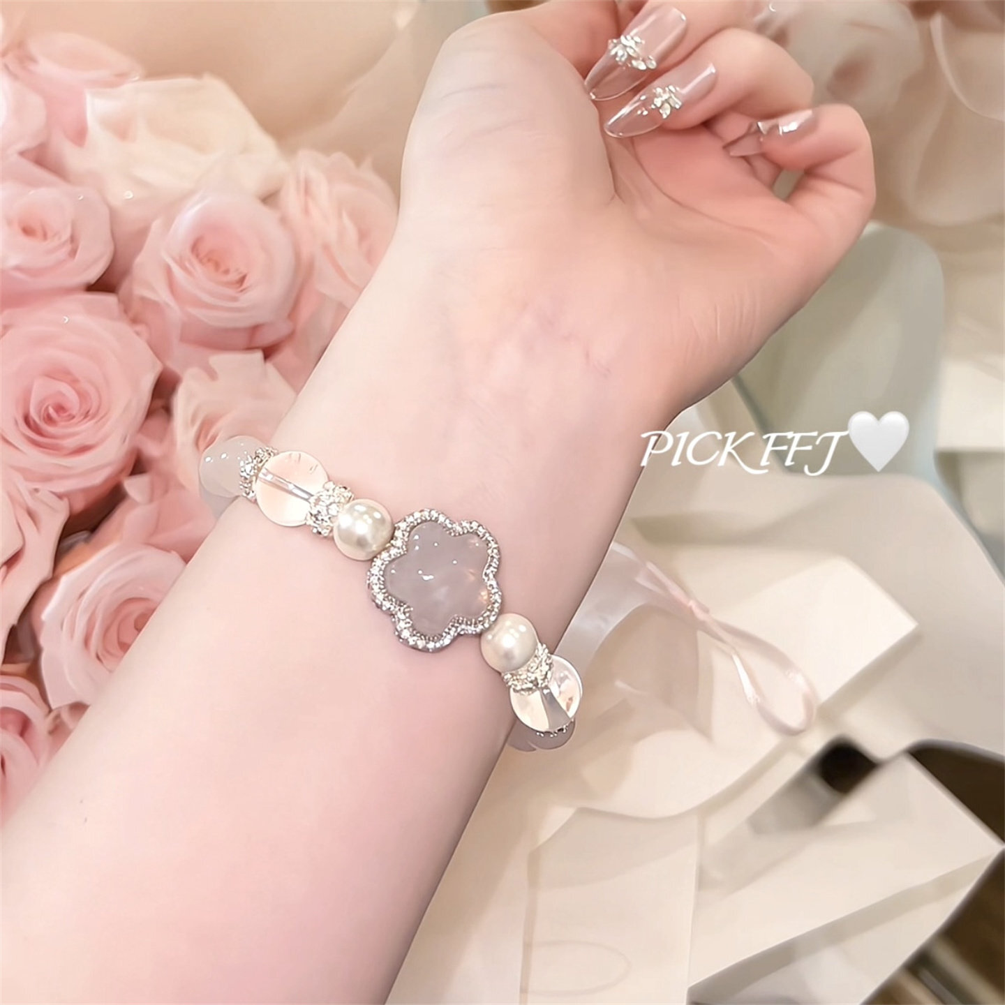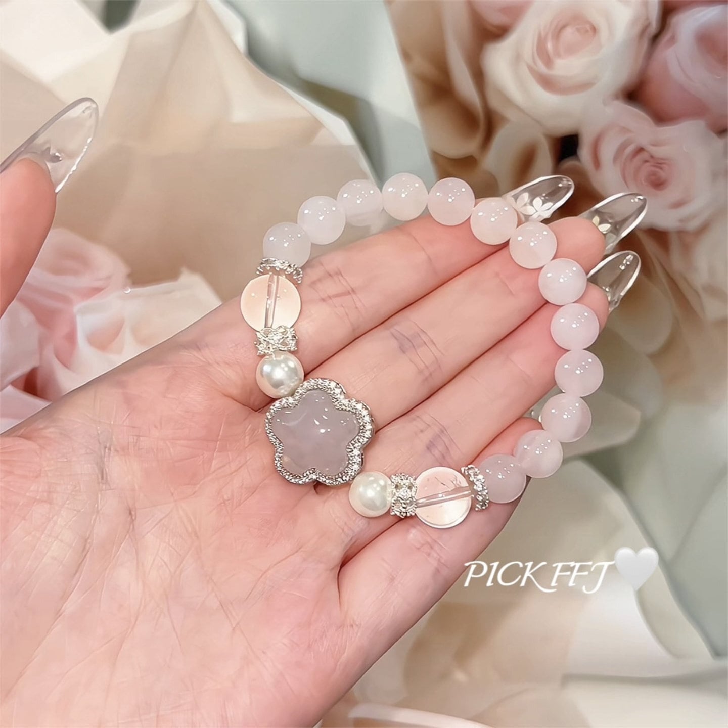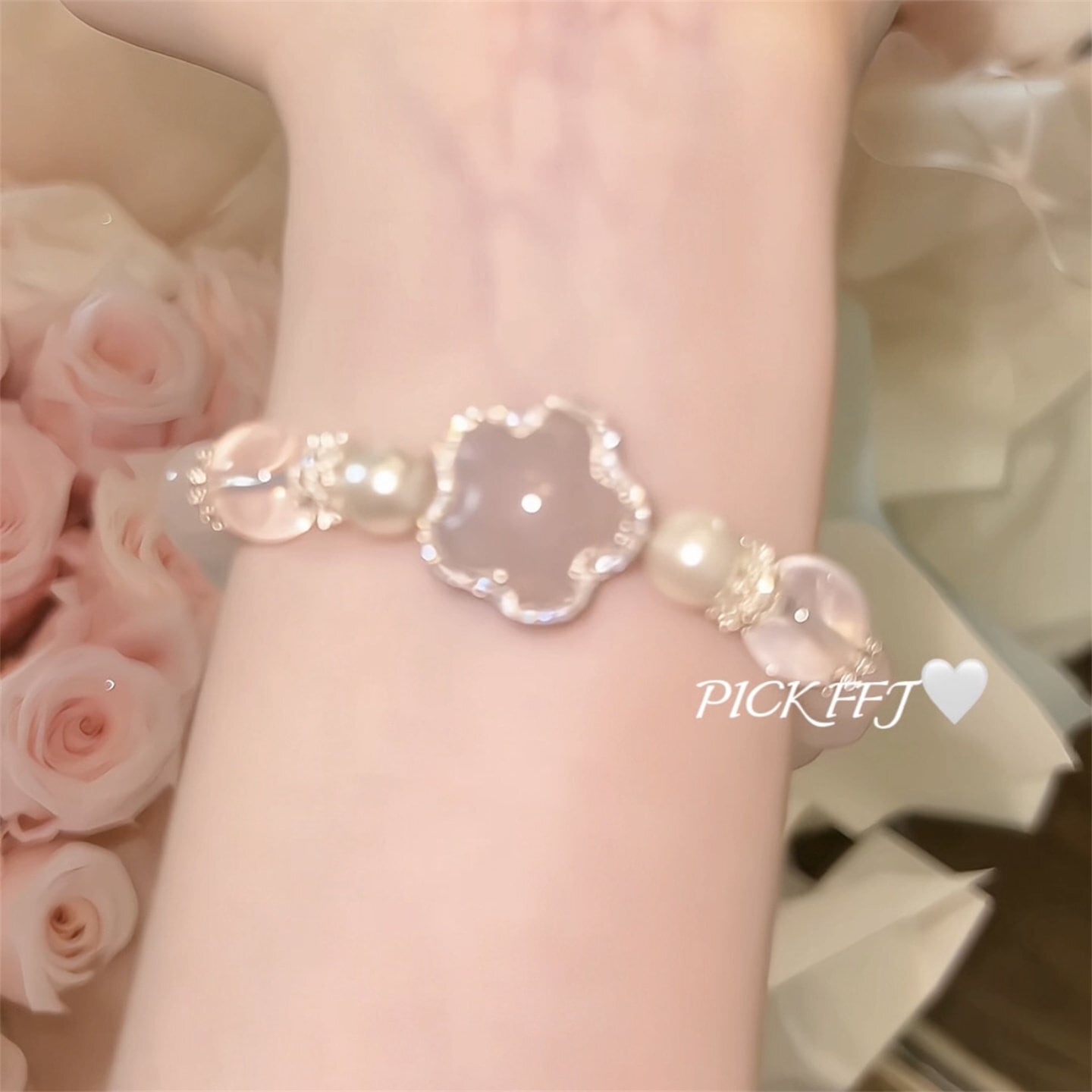 月にほどく恋 - ローズクォーツの星守りブレス❤︎B406