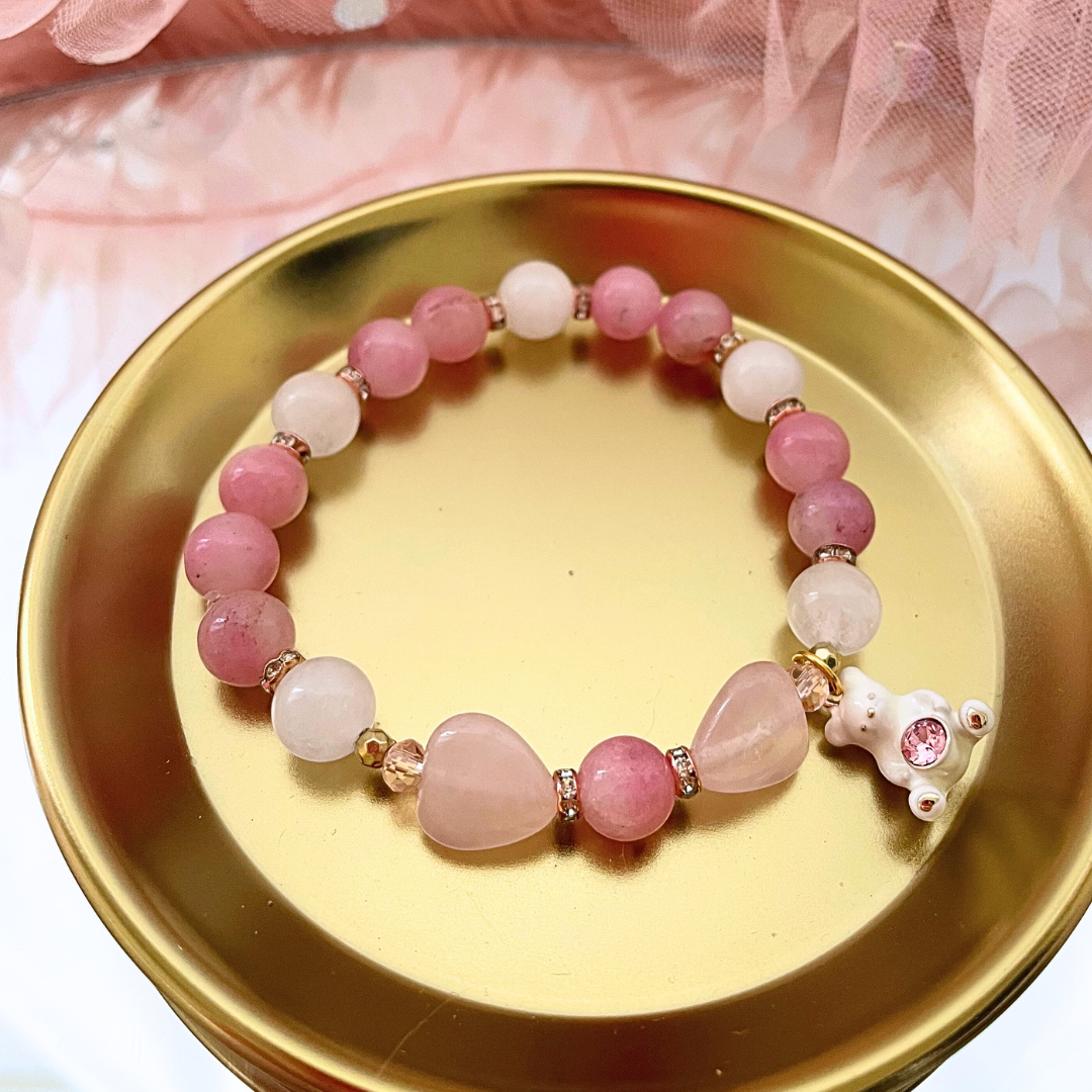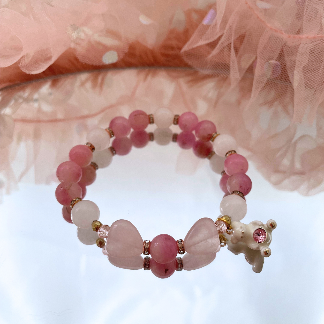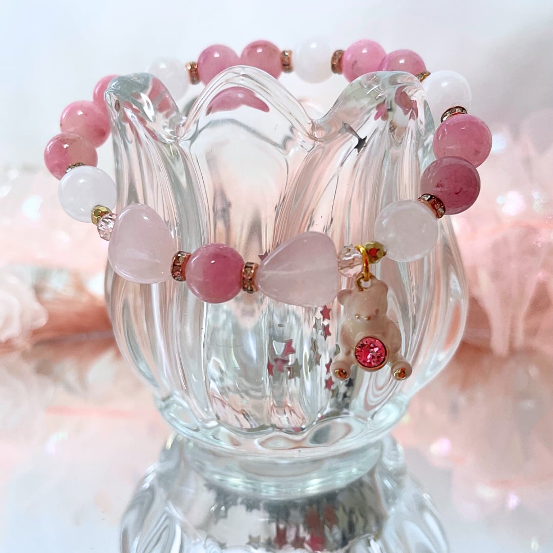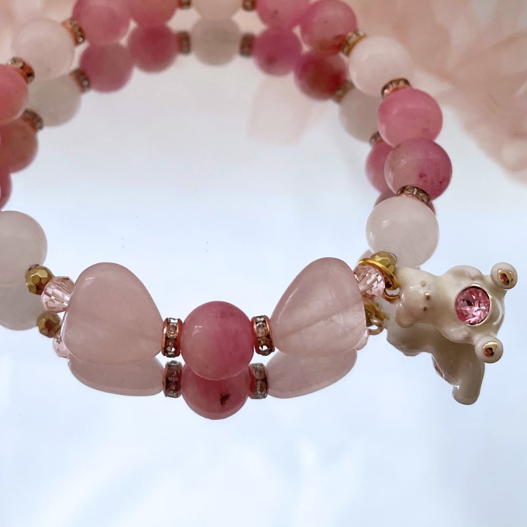 ハートのローズクォーツで形づくられた、