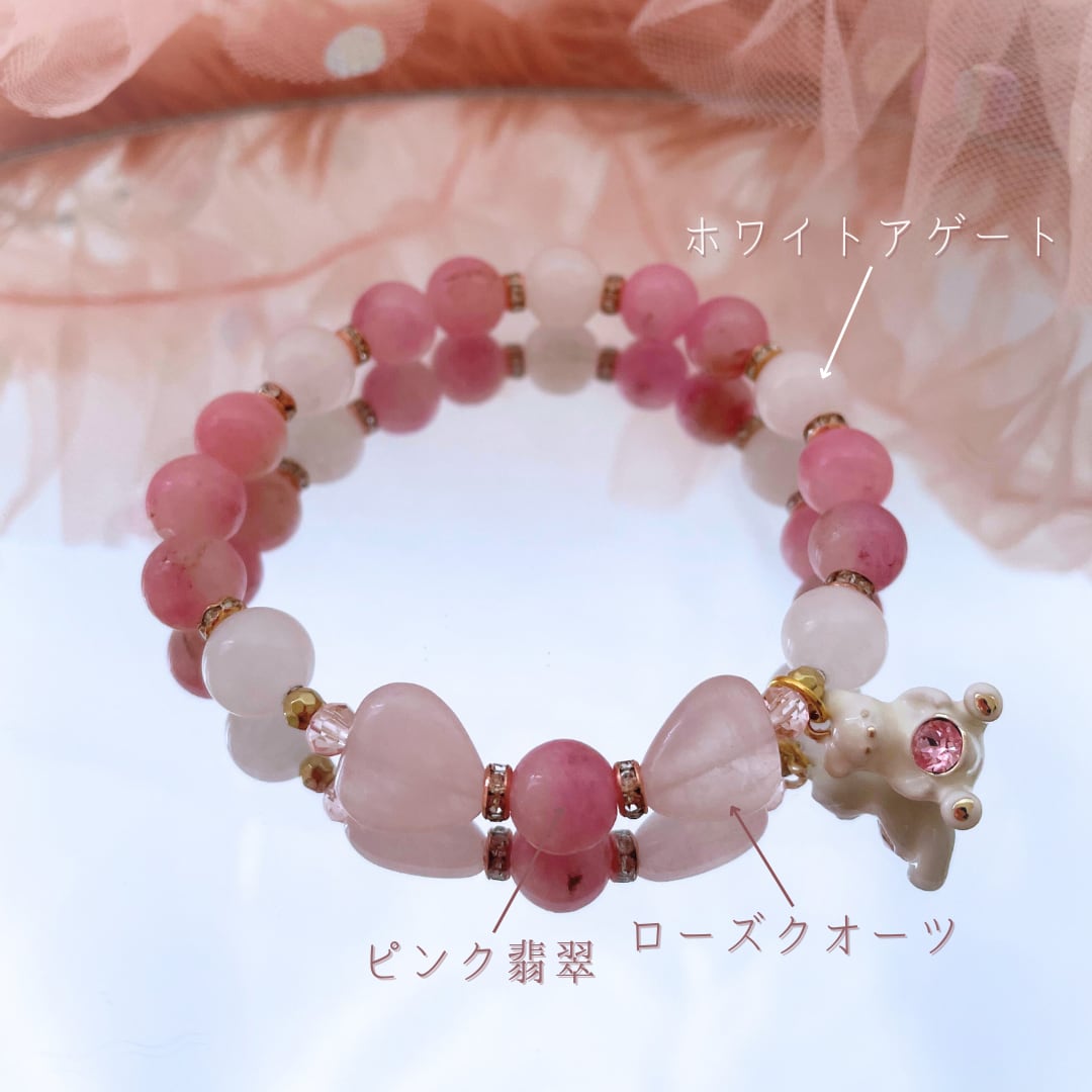 ハートのローズクォーツで作られた小さなリボン。