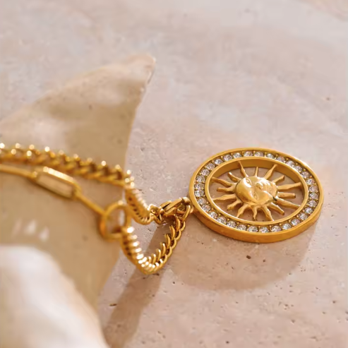 汗や香水、酸性液体、アルコールなどとの長時間接触により、ゴールドフィルドの保護層が酸化することがあります。定期的に柔らかい布で拭くことで、輝きを保つことができます。