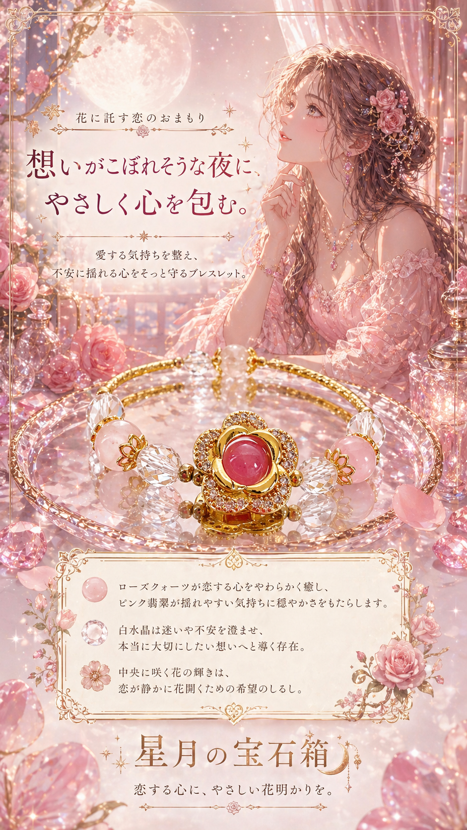 “恋心をやさしく咲かせるお守り”として生まれたブレスレットです。