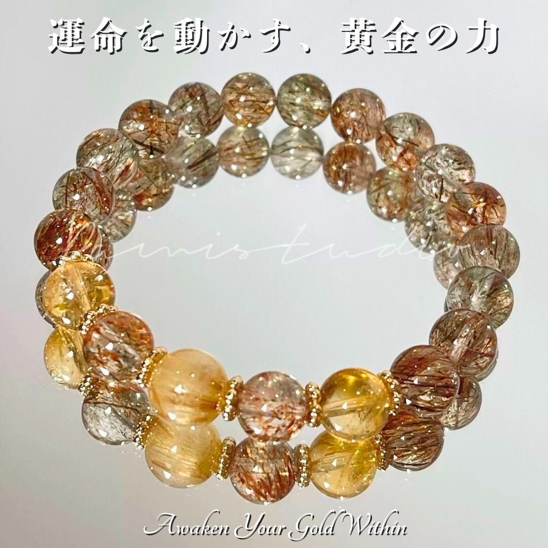 黒金超七と金ルチルクォーツが組み合わさることで、豊かで安定した人生を象徴する特別なアイテムとなっています。成功と繁栄を願う全ての方に最適です。