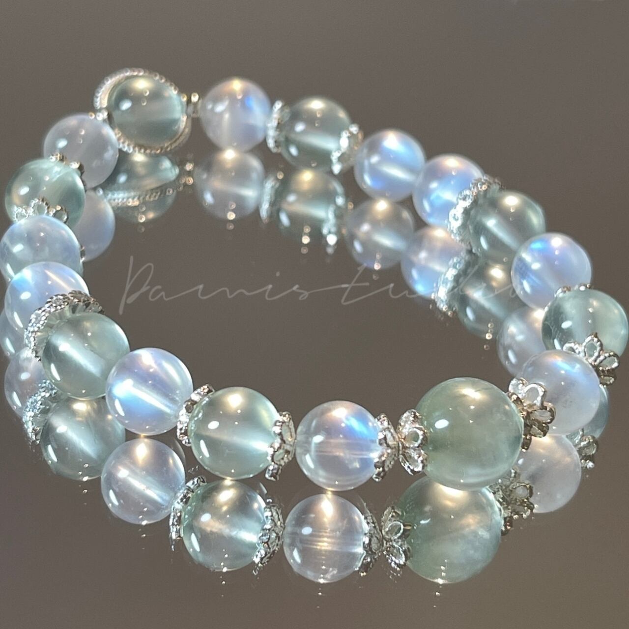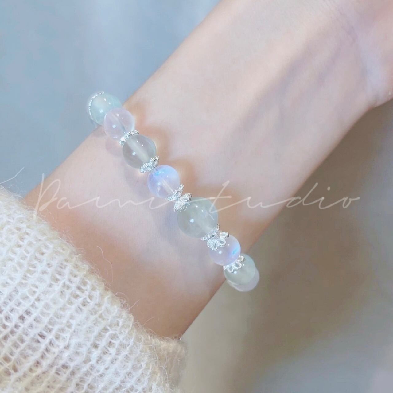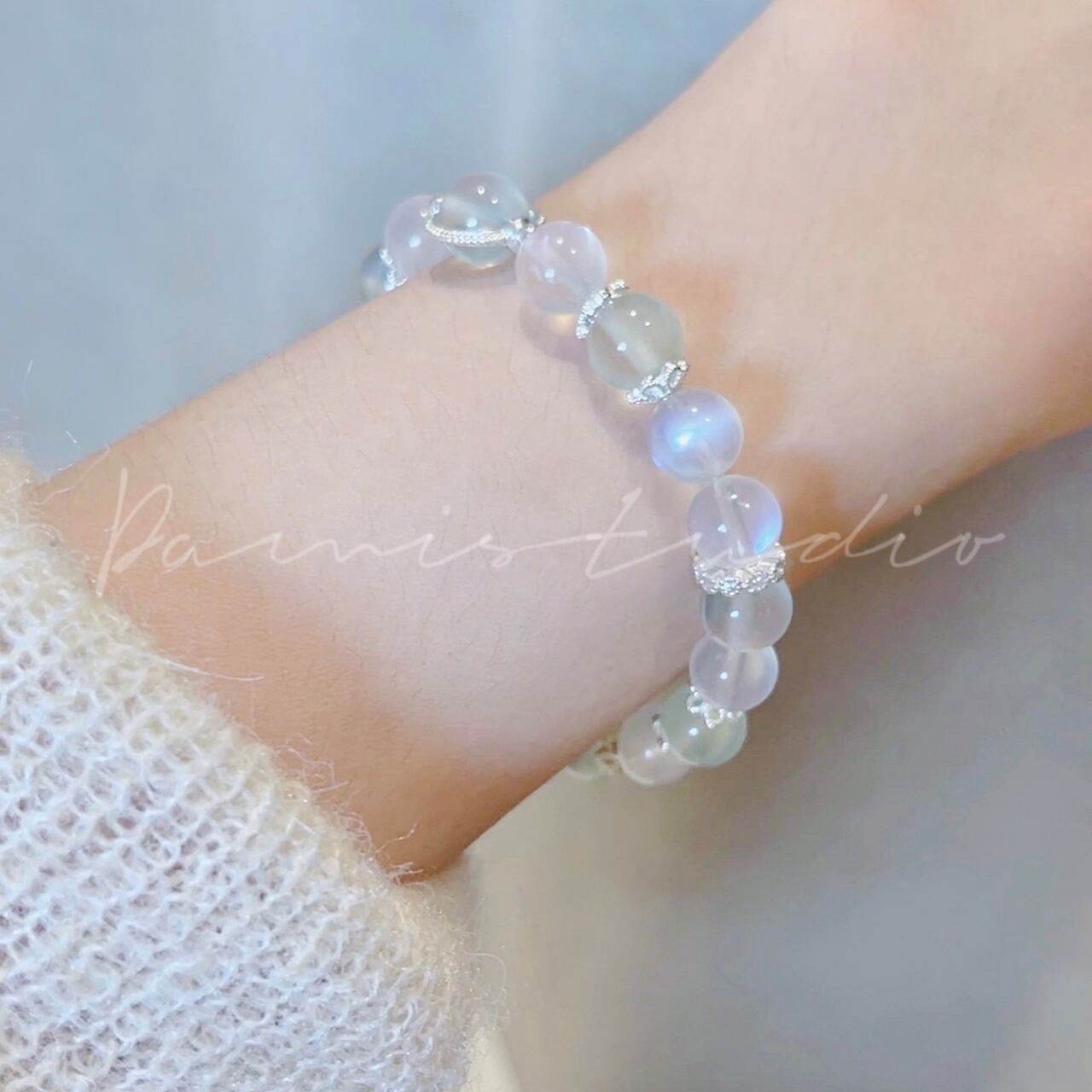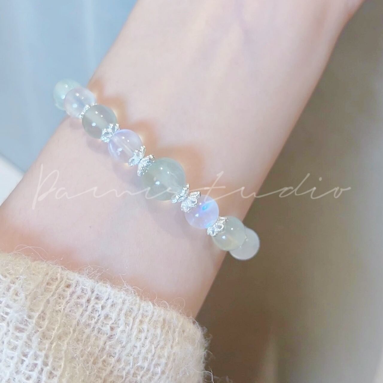 「白茶清欢」は、あなたの心に安らぎと新たな光をもたらすアイテムです。ムーンストーンと葡萄石が織りなす優雅なエネルギーが、日常に輝きを添え、未来へと向かう勇気を与えてくれます。自分を癒し、輝かせるための大切なパートナーとして、このブレスレットを選んでみませんか?
