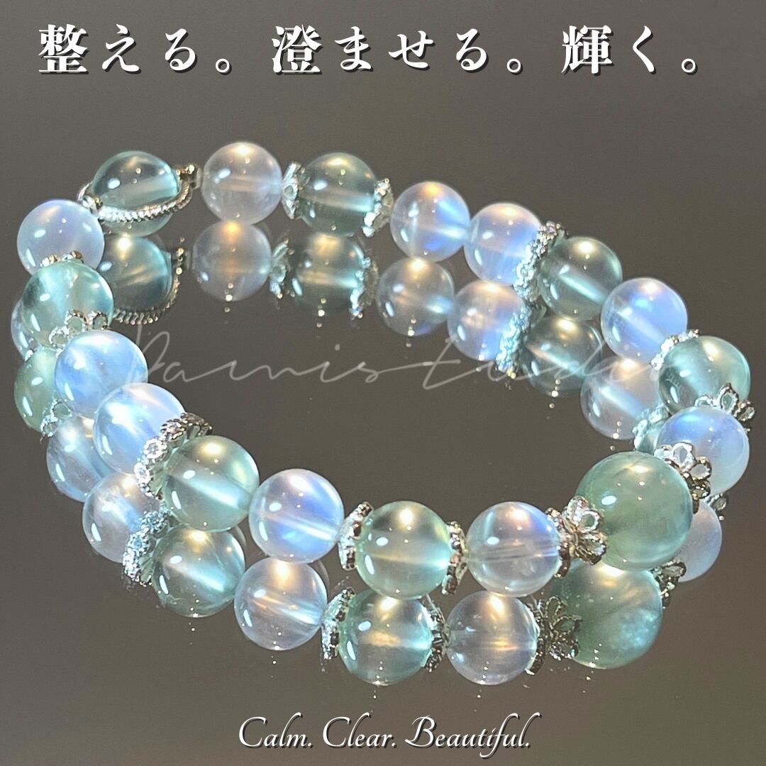 心の安定: ムーンストーンの優しいエネルギーが、日々のストレスや不安を和らげ、心の安定をもたらします。