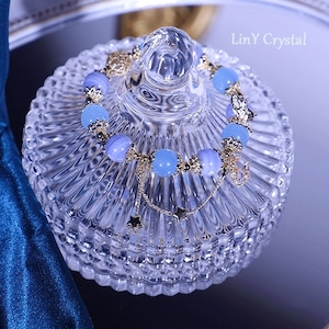 このブレスレットは、月の女神セレーネの祈りを宿したアイテム。アクアマリンとブルーレースアゲートが、静かで穏やかなエネルギーをもたらし、日々の幸運と癒しをサポートします。